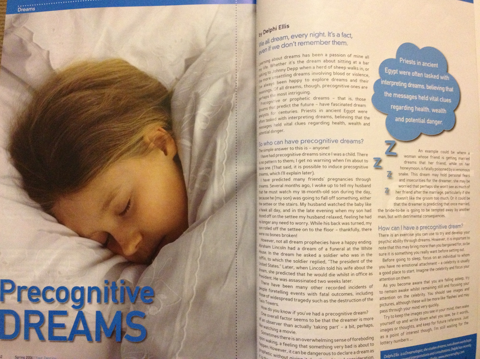 Article by Delphi Ellis on Precognitive Dreams – dreams which predict the future